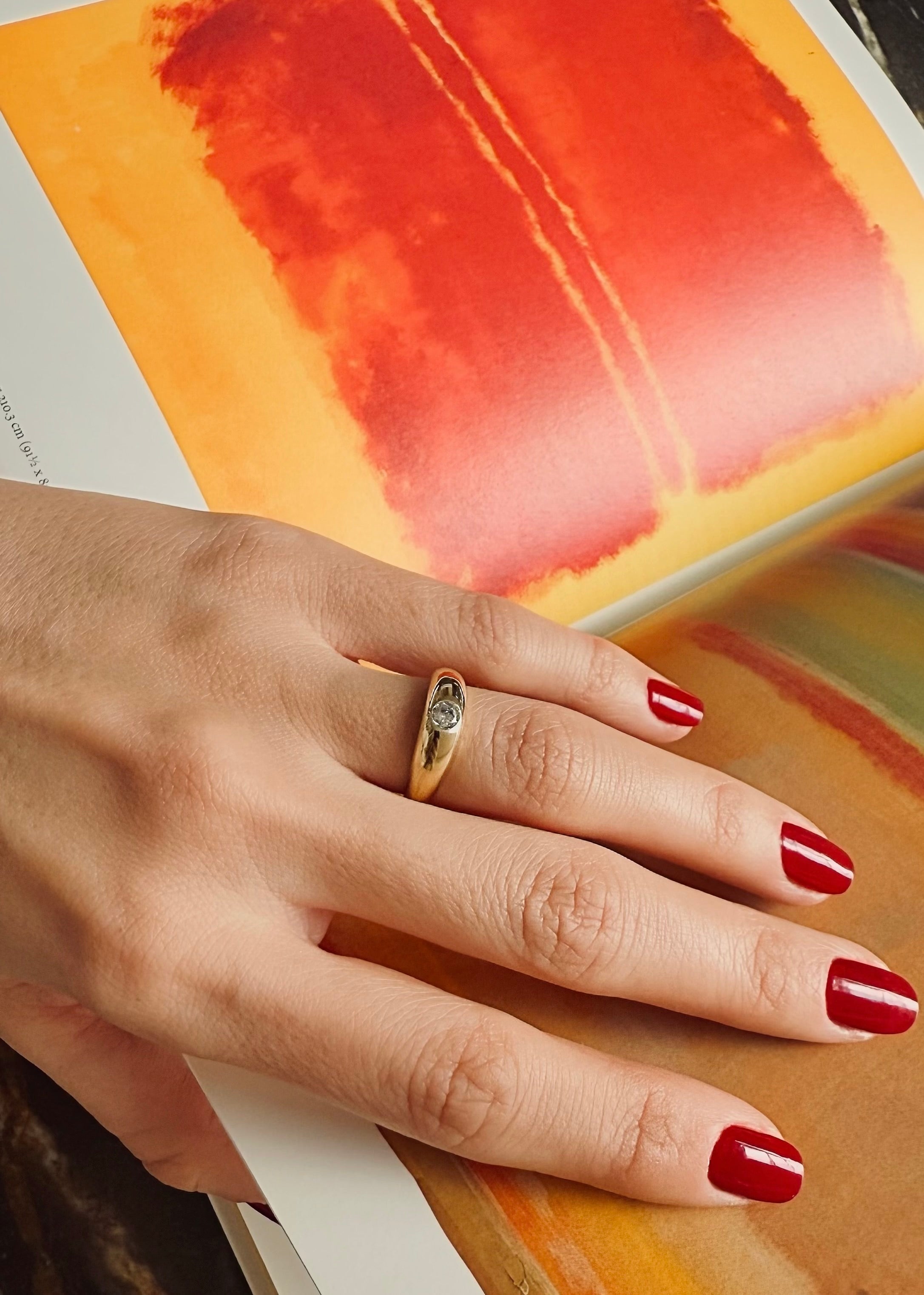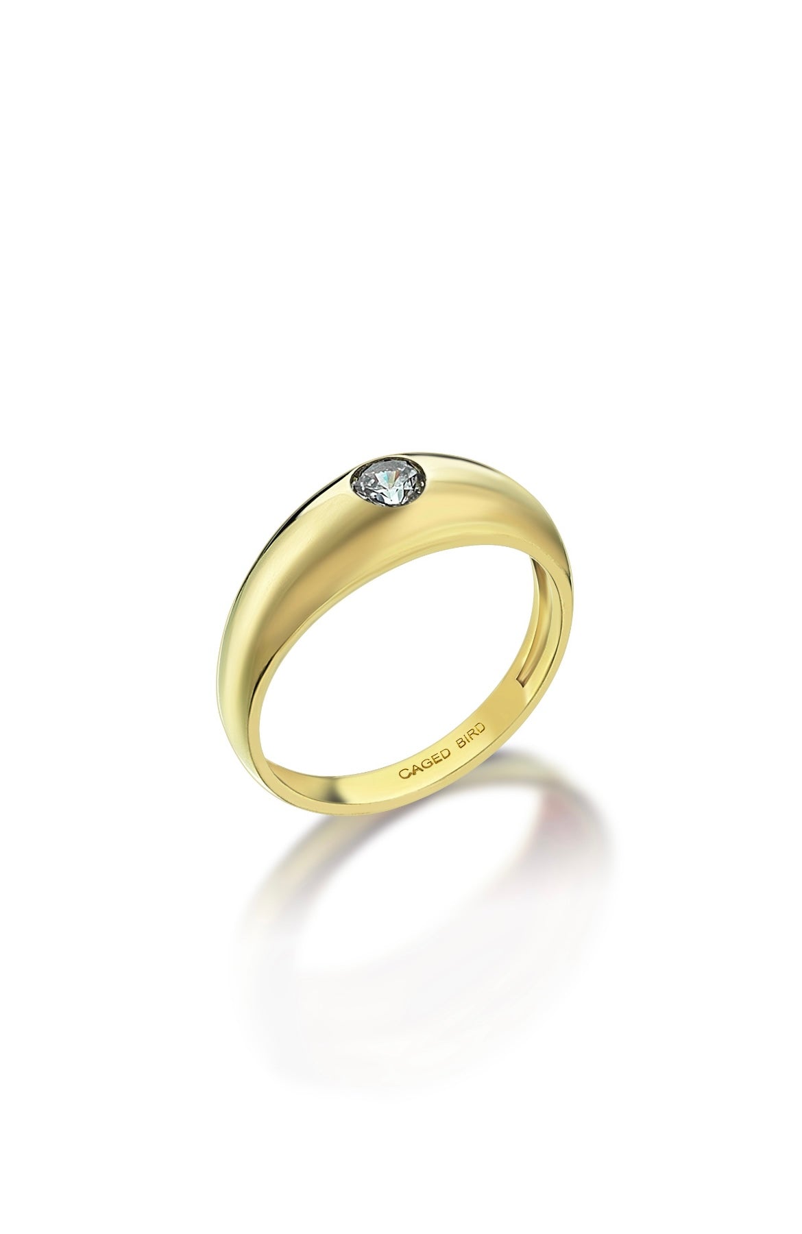 Zamansız ve zarif tek taşlı klasik 14 Ayar Altın tasarım yüzük.