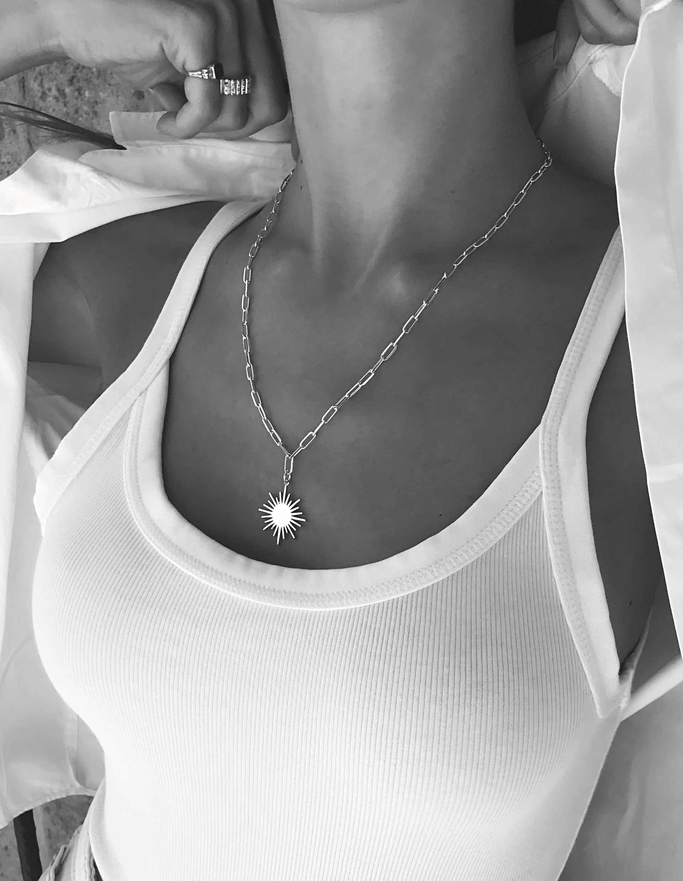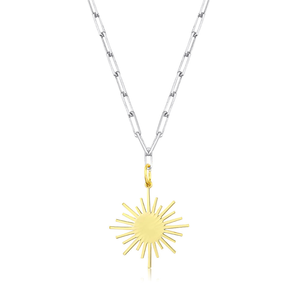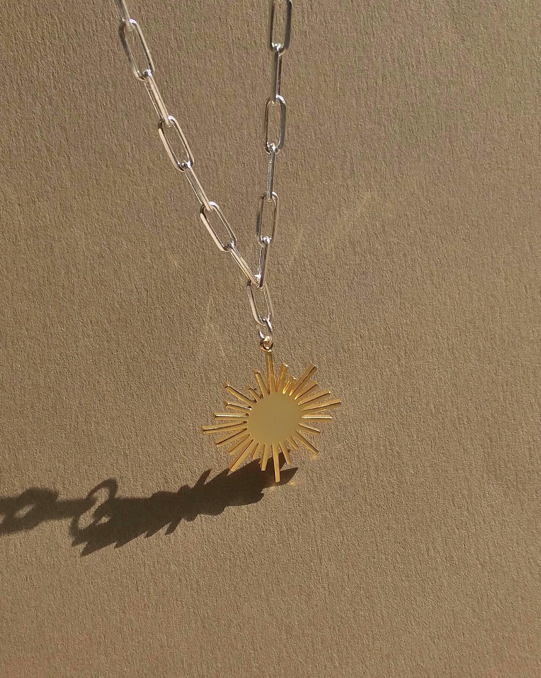 Gümüş zincir, bronz üzeri altın kaplama yıldız uç çift renk koleksiyonu tasarımı İsis Kolye, kısaltılabilir zincir