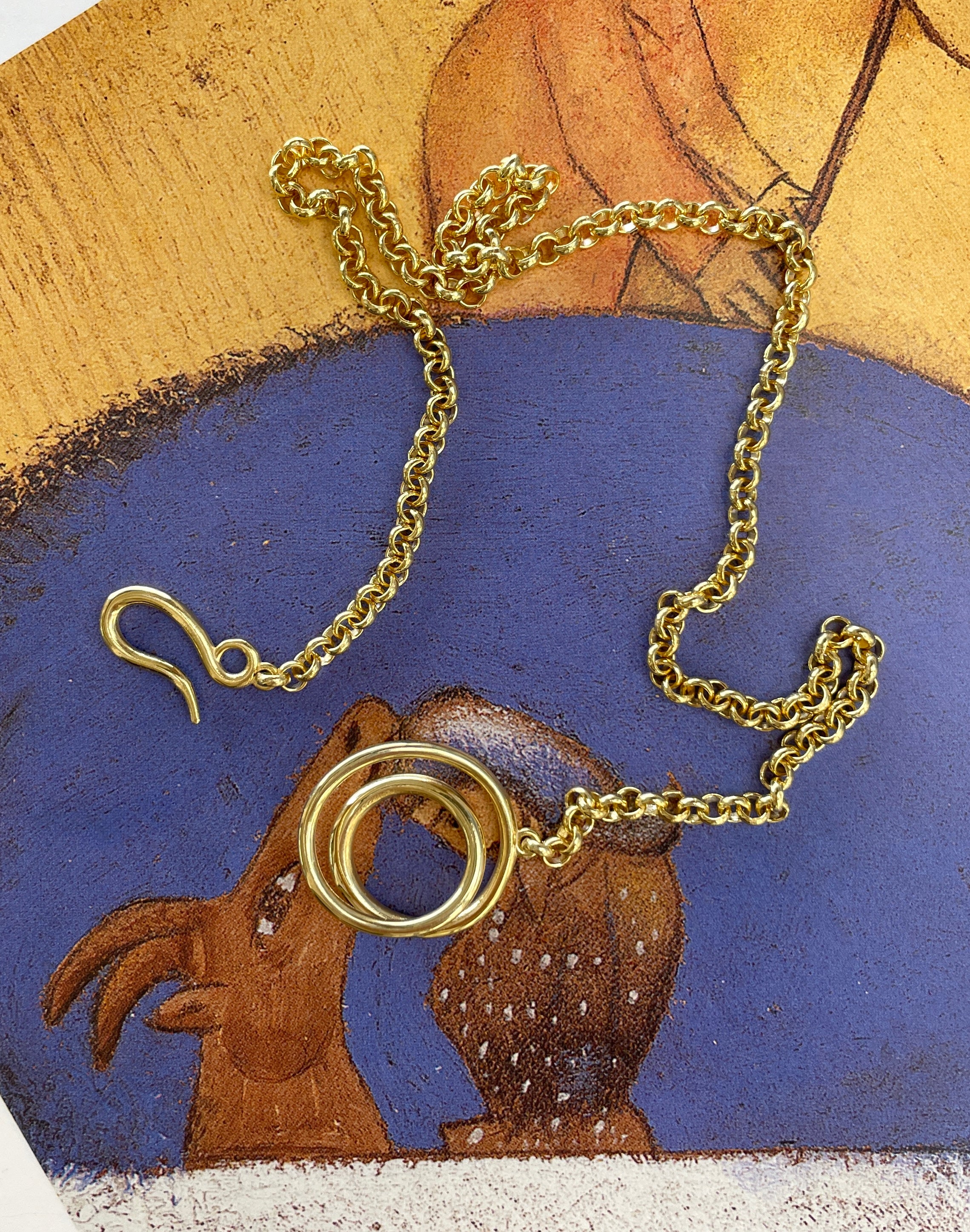 Gümüş üzeri 18 Ayar Altın Kaplama tasarım kilitli zincir Dali Kolye. Kilit kısmı ayarlanabilir, sıkılabilir.