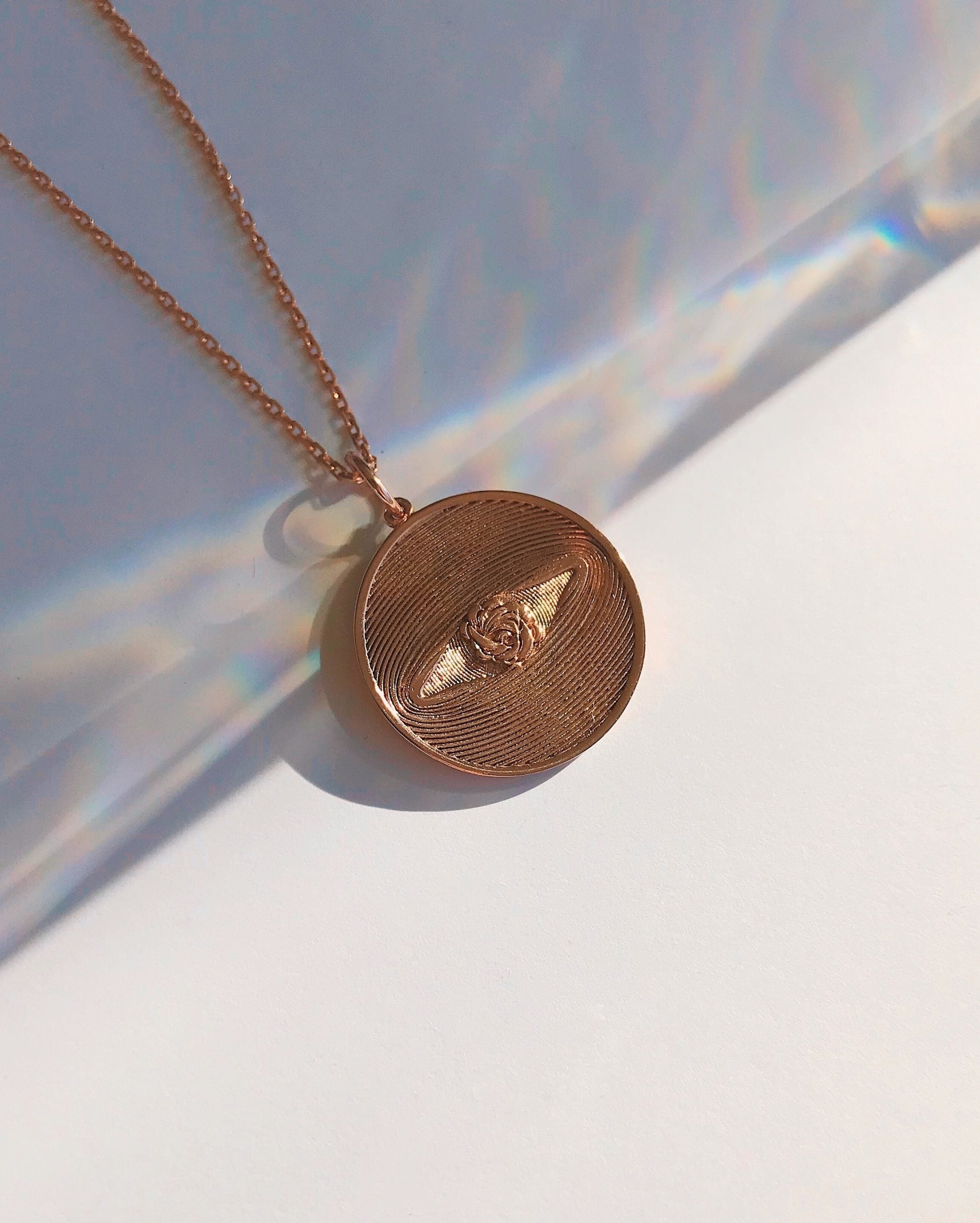 ‘Desert Rose’ kolye ufak bir depremin bir kum sarkacında yarattığı göz ve gül şekillerinden ilham alınarak tasarlanmıştır.