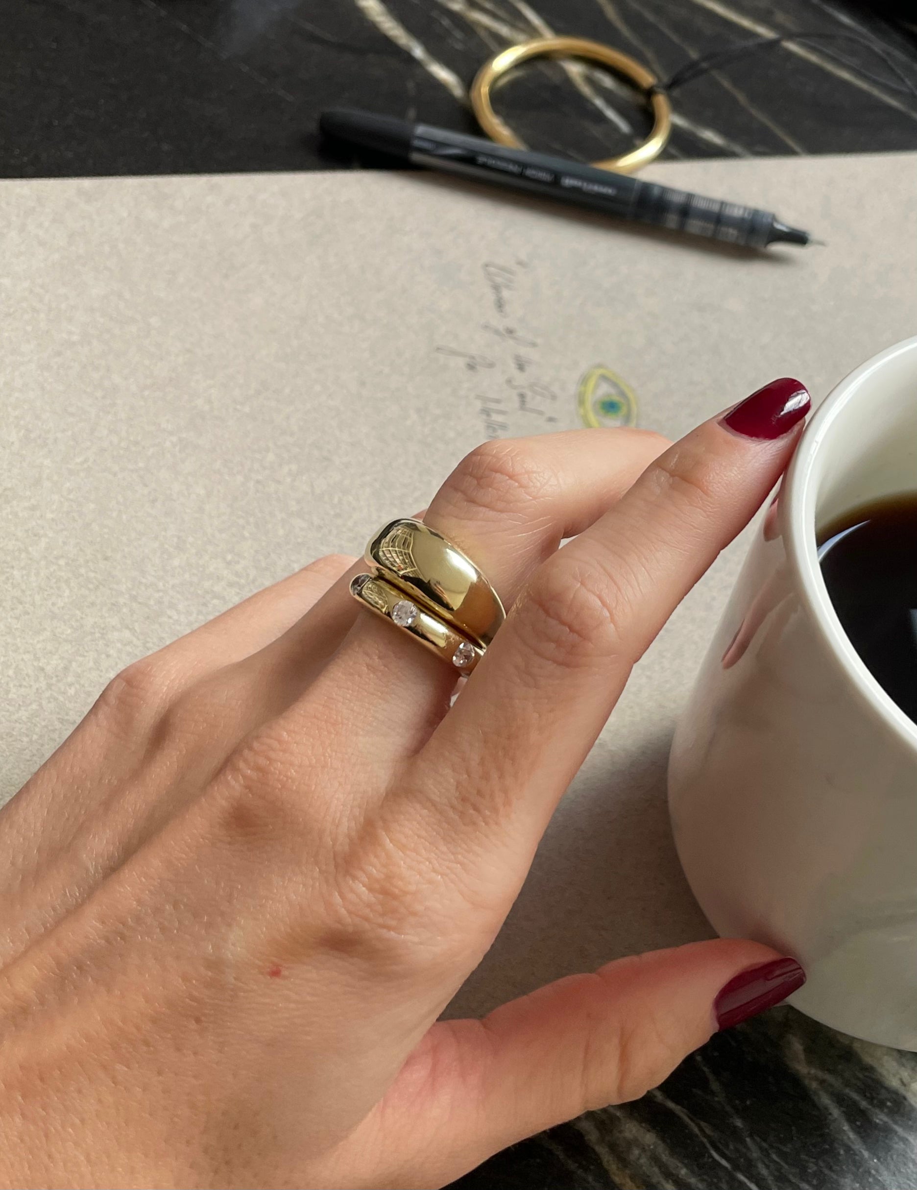 El yapımı gümüş üzeri 18 Ayar Altın Kaplama parlak ve şık yüzük.