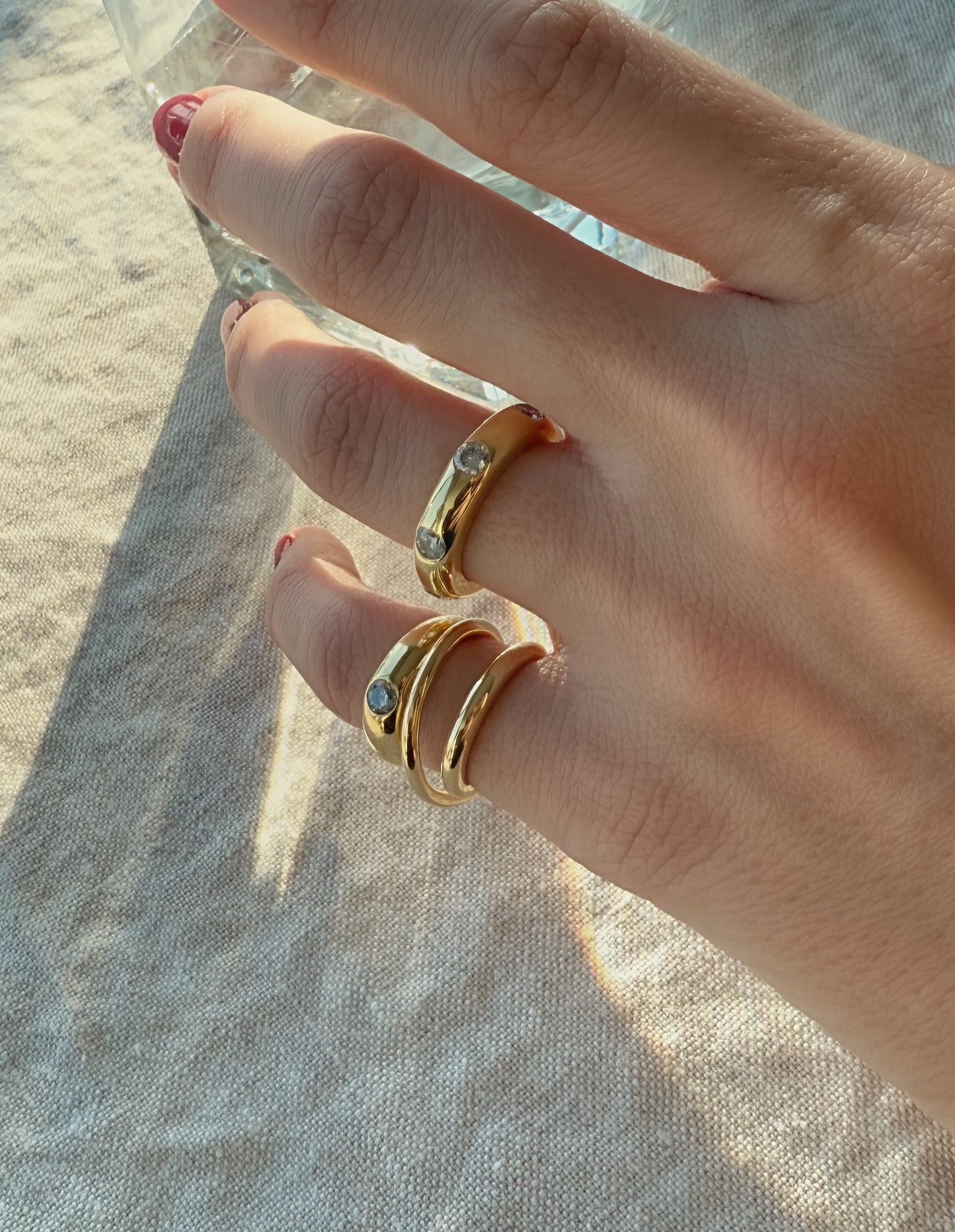 7 Swarovski taşıyla tasarlanmış tamtur yüzük. El yapımı gümüş üzeri 18 Ayar Altın Kaplama.
