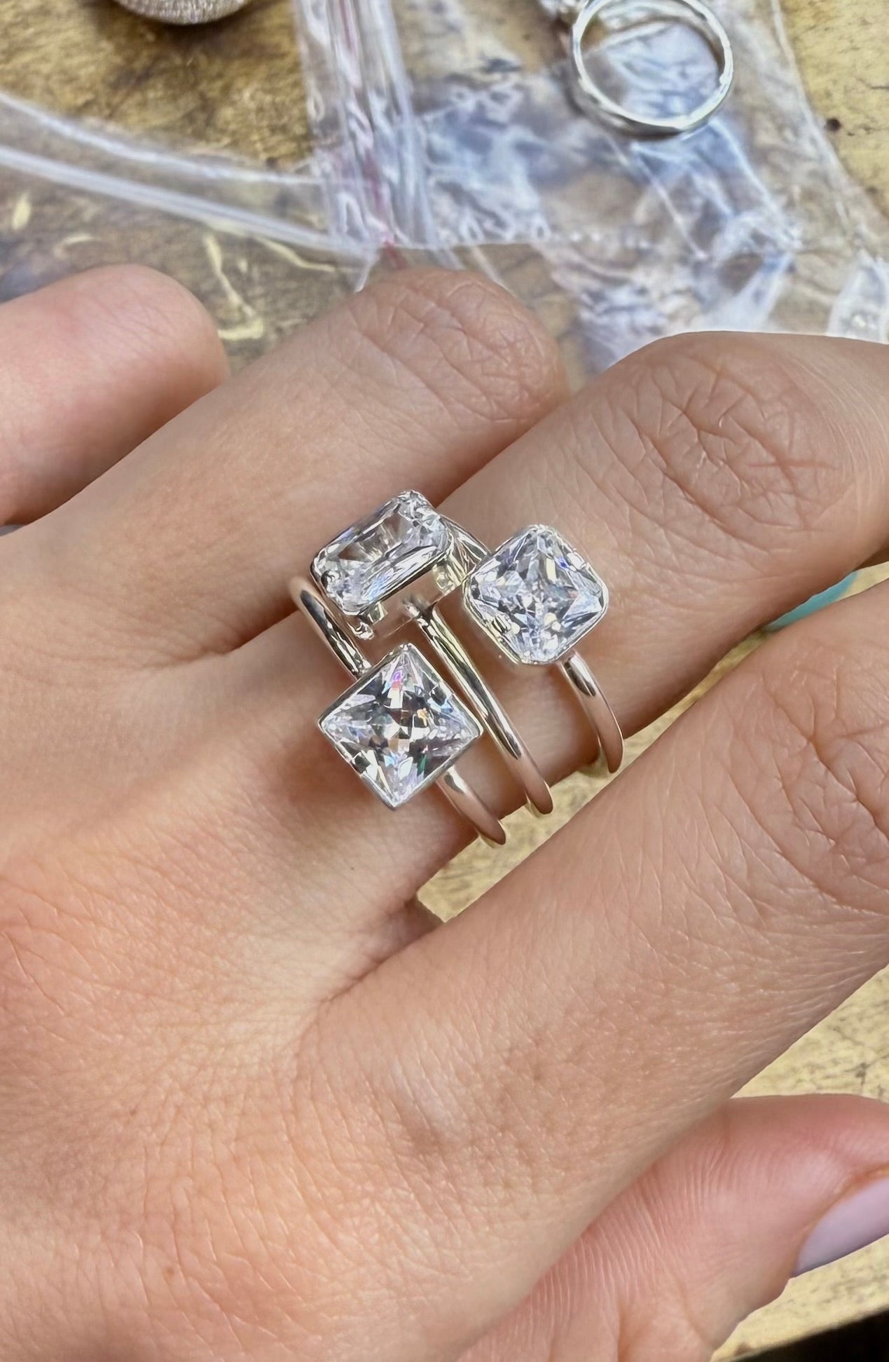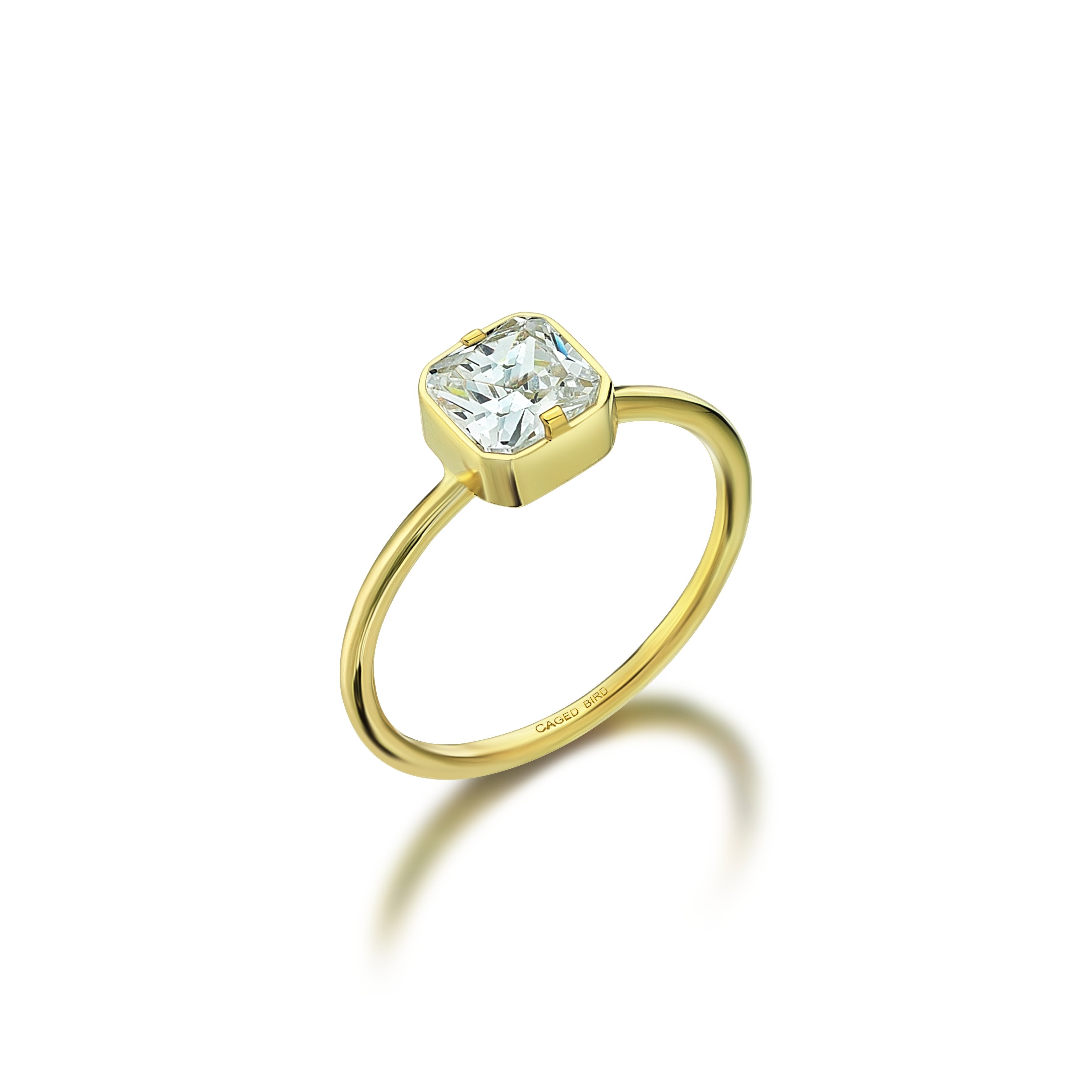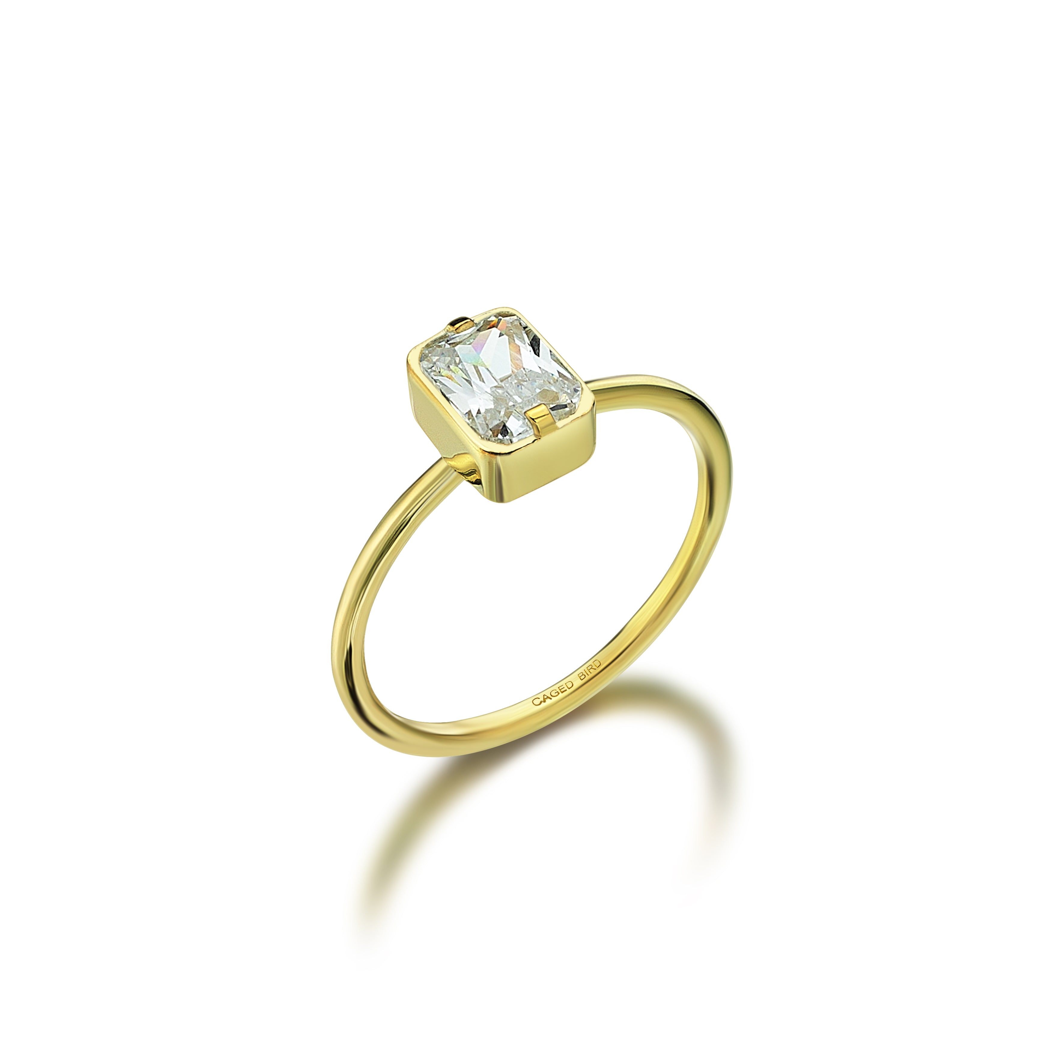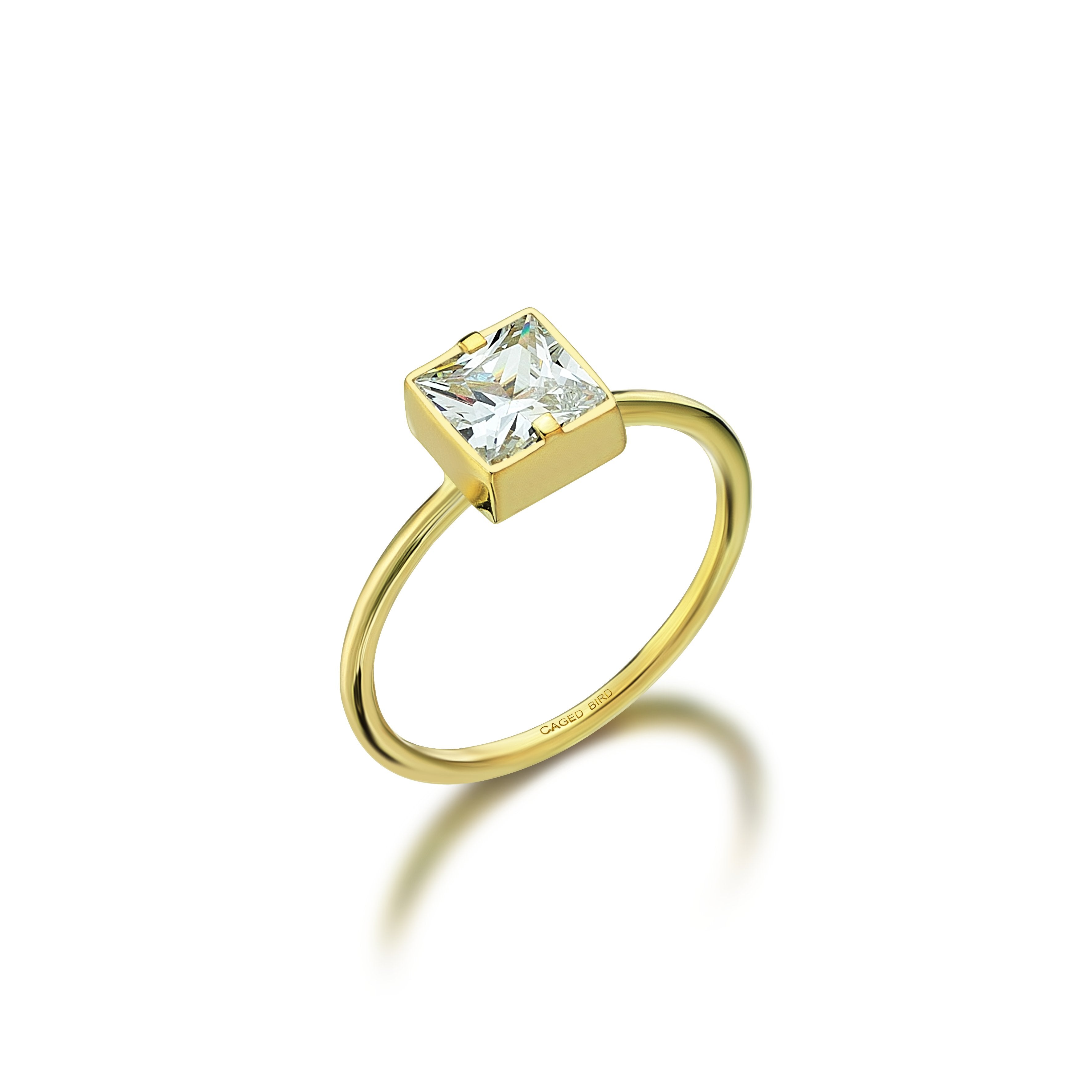 Özel kesim Swarovski taşlarla el işçiliği ile tasarlanmış gümüş üzeri 18 Ayar Altın mikron kaplama zarif yüzük.