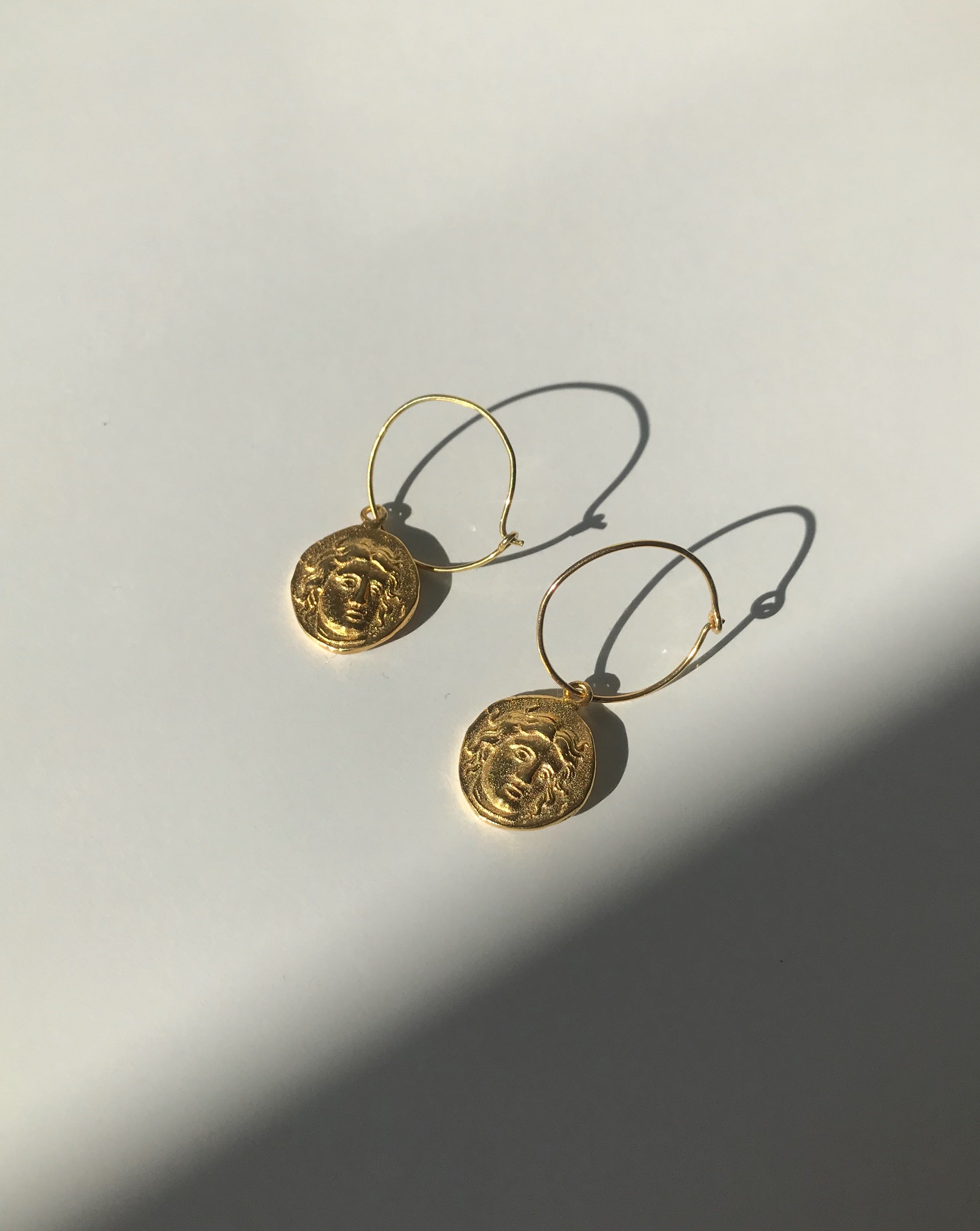 Gümüş üzeri 18 Ayar Altın mikron kaplama aslan figürlü küpe.