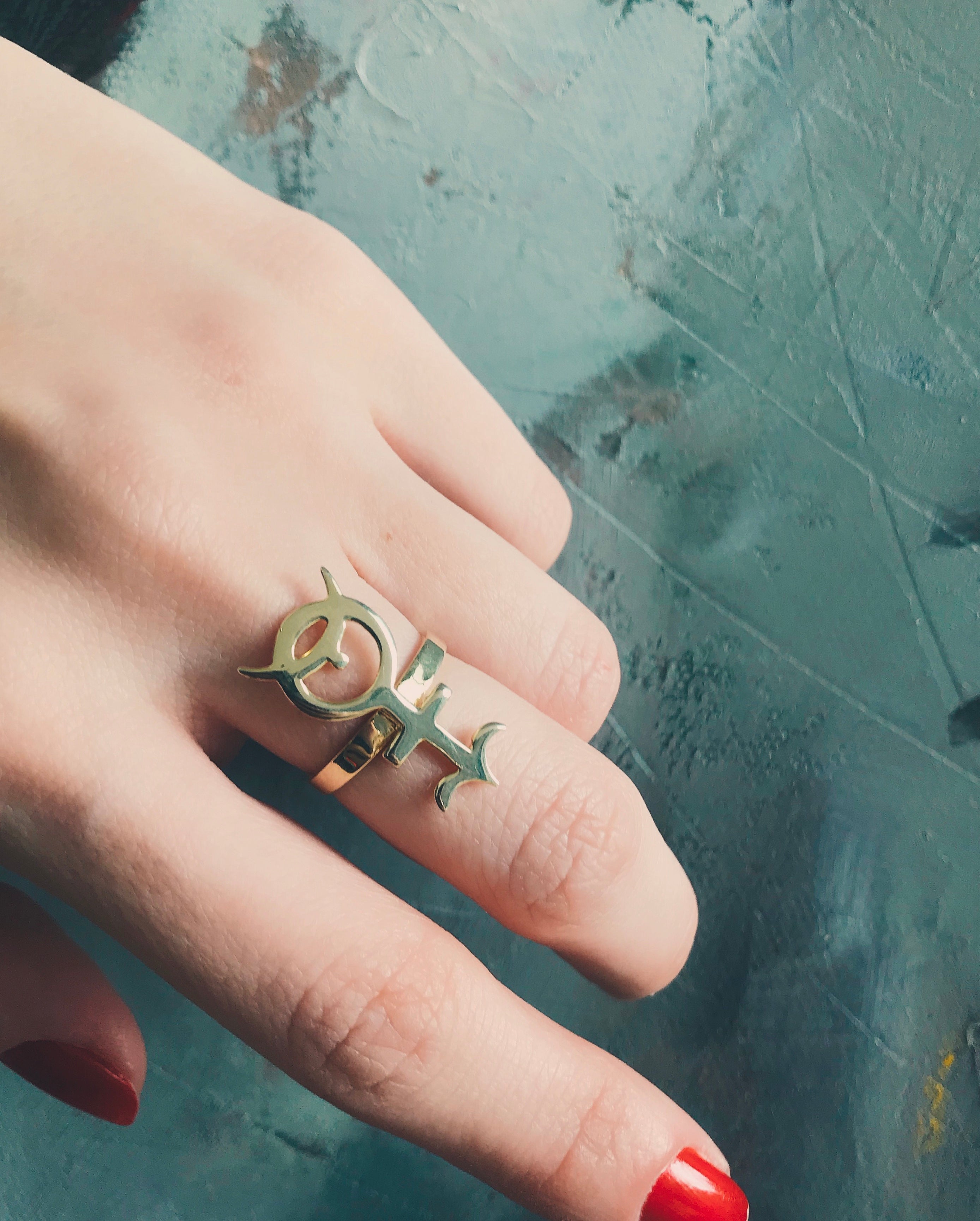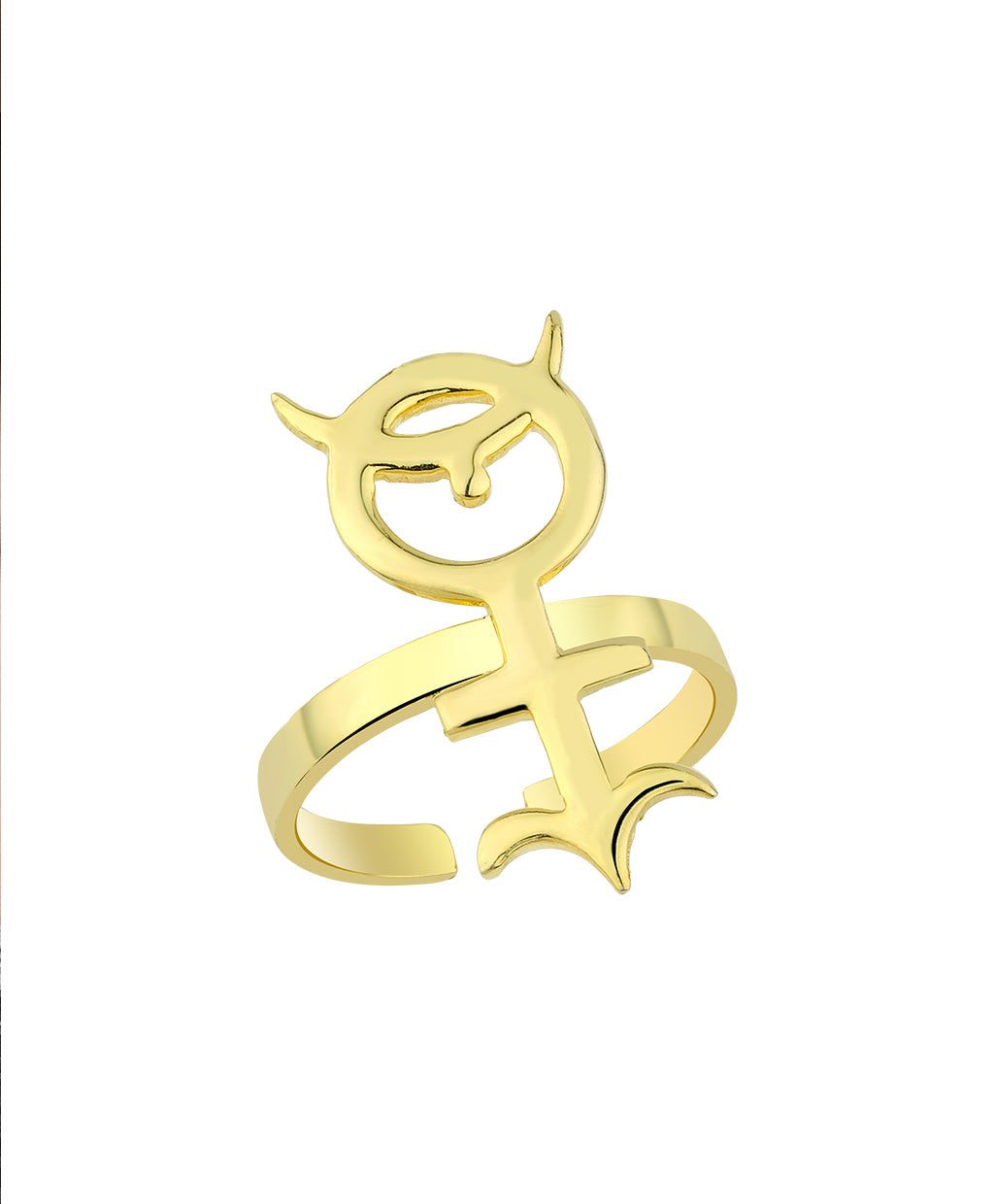 Ayarlanabilir el yapımı Gümüş üzeri 18 Ayar Altın Kaplama Monas Hiyeroglif yüzük.
